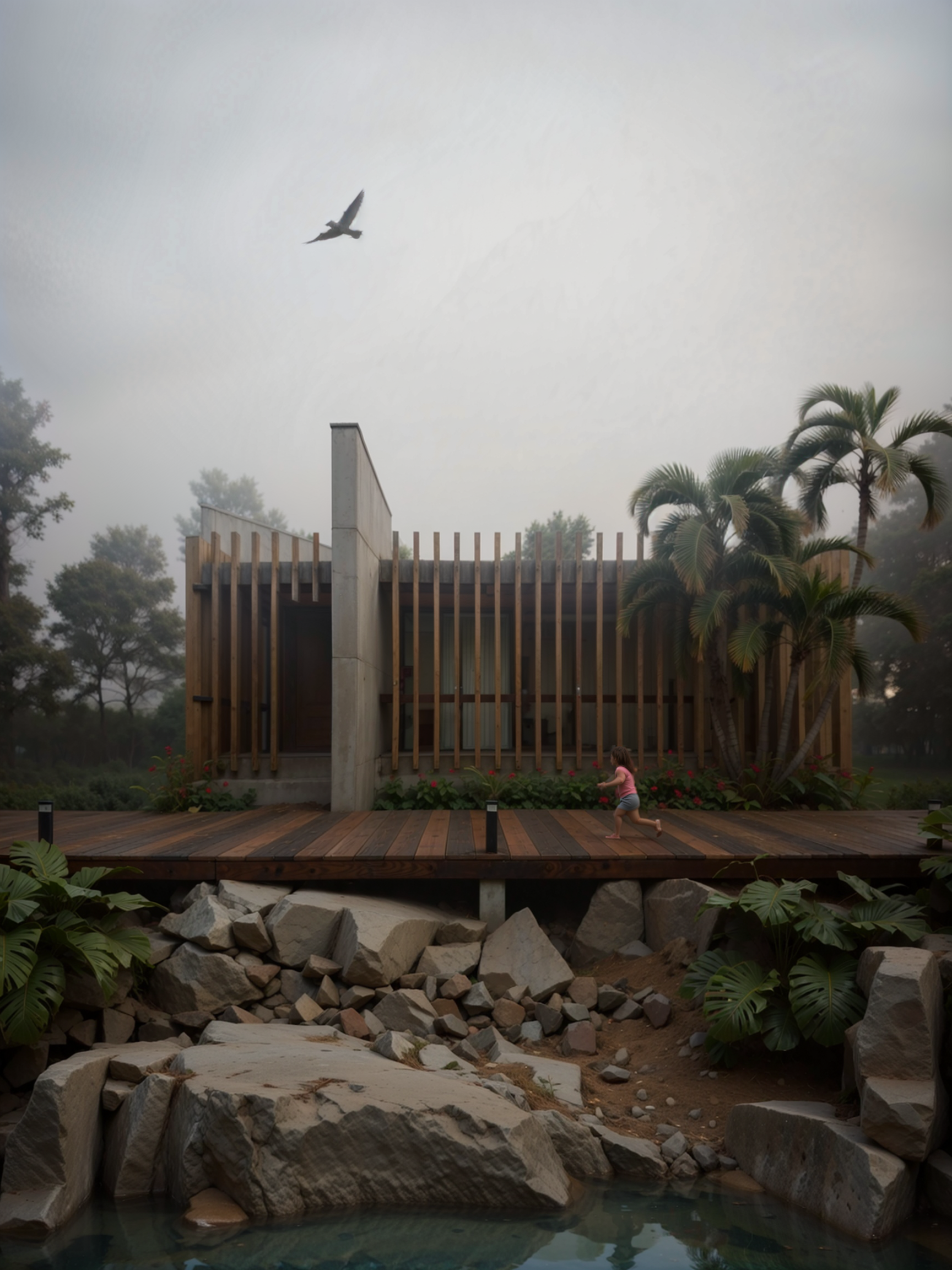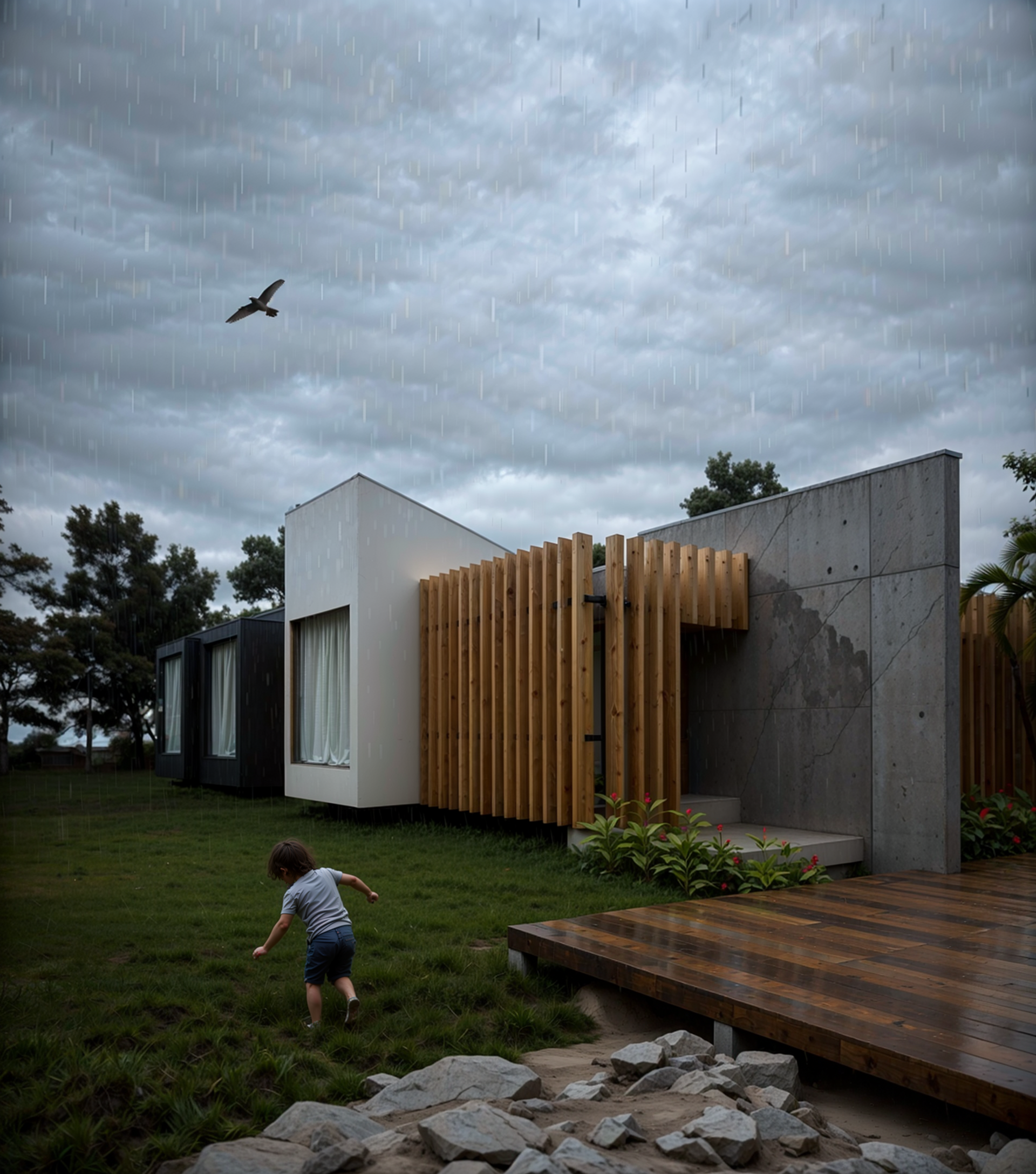 A Casa Brise nasceu de uma ideia simples: um prisma retangular envidraçado e protegido em suas quatro laterais por brises verticais (quebra-sol) e um jardim (entre o brise e o fechamento em vidro). A privacidade pode ser controlada simplesmente com cortinas, abrindo e fechando os ambientes conforme a necessidade. Essa casa é assim, pois é projetada para um terreno livre de edificações em sua vizinhança imediata, favorecendo sua integração com a paisagem circundante. Para finalizar, os ambientes que necessitam de maior privacidade (dormitórios, sala de TV, banheiros) encontram-se dentro de outros volumes, nas cores branca e cinza, inseridos parciamente dentro do prisma maior, introduzindo uma dinâmica nas fachadas da casa.